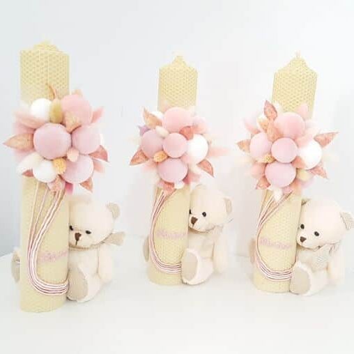 - Lumanare din ceara curata Milky White (nuantele si succesiunile decoratiunilor variaza de la o comanda la alta fiind un produs realizat pe loc, in functie de materialele din stoc, pastram nuantele asortate)