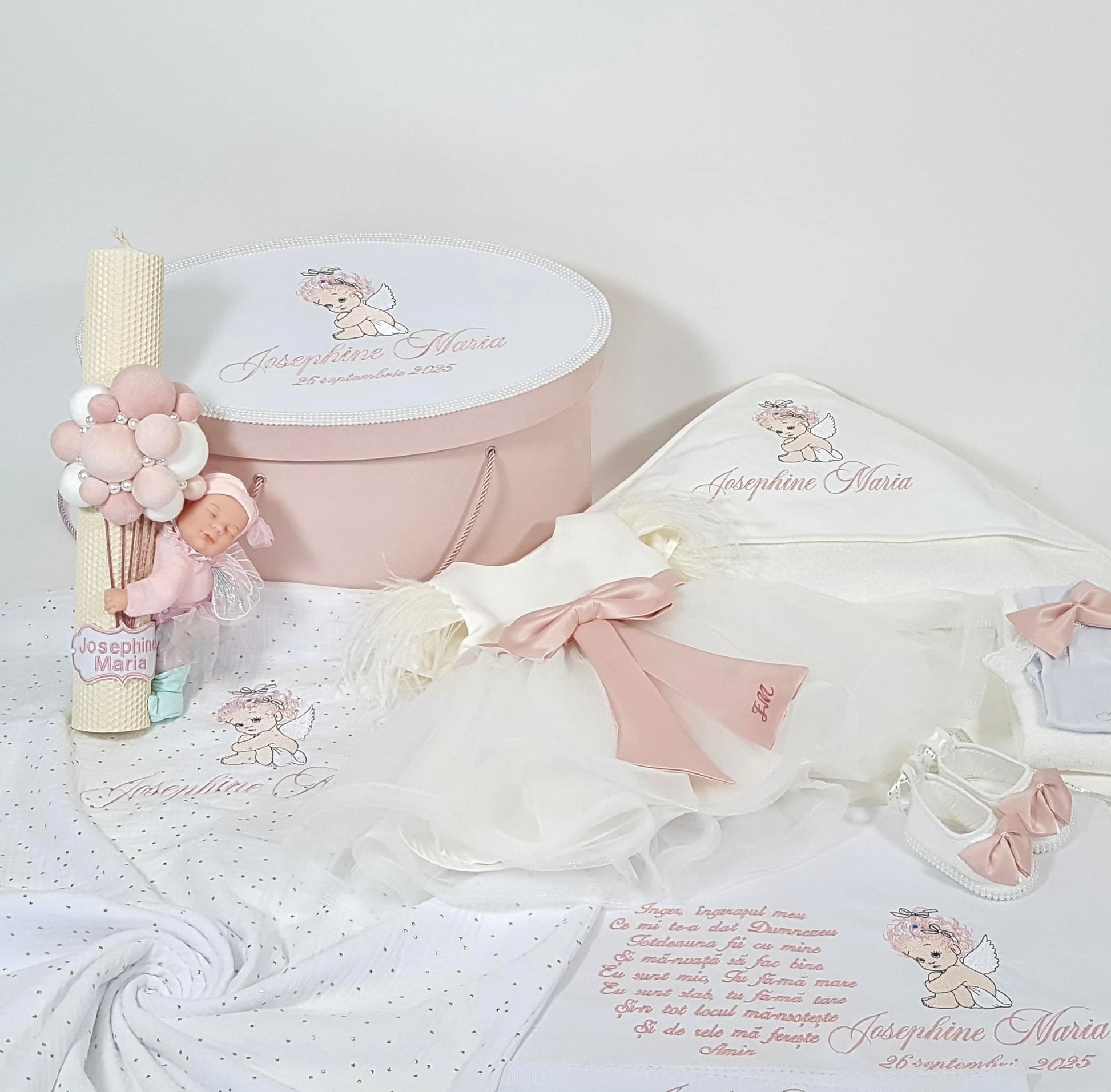 Trusou pentru botez fetita cu rochita personalizata si lumanare cu bebelus Anne Geddes: